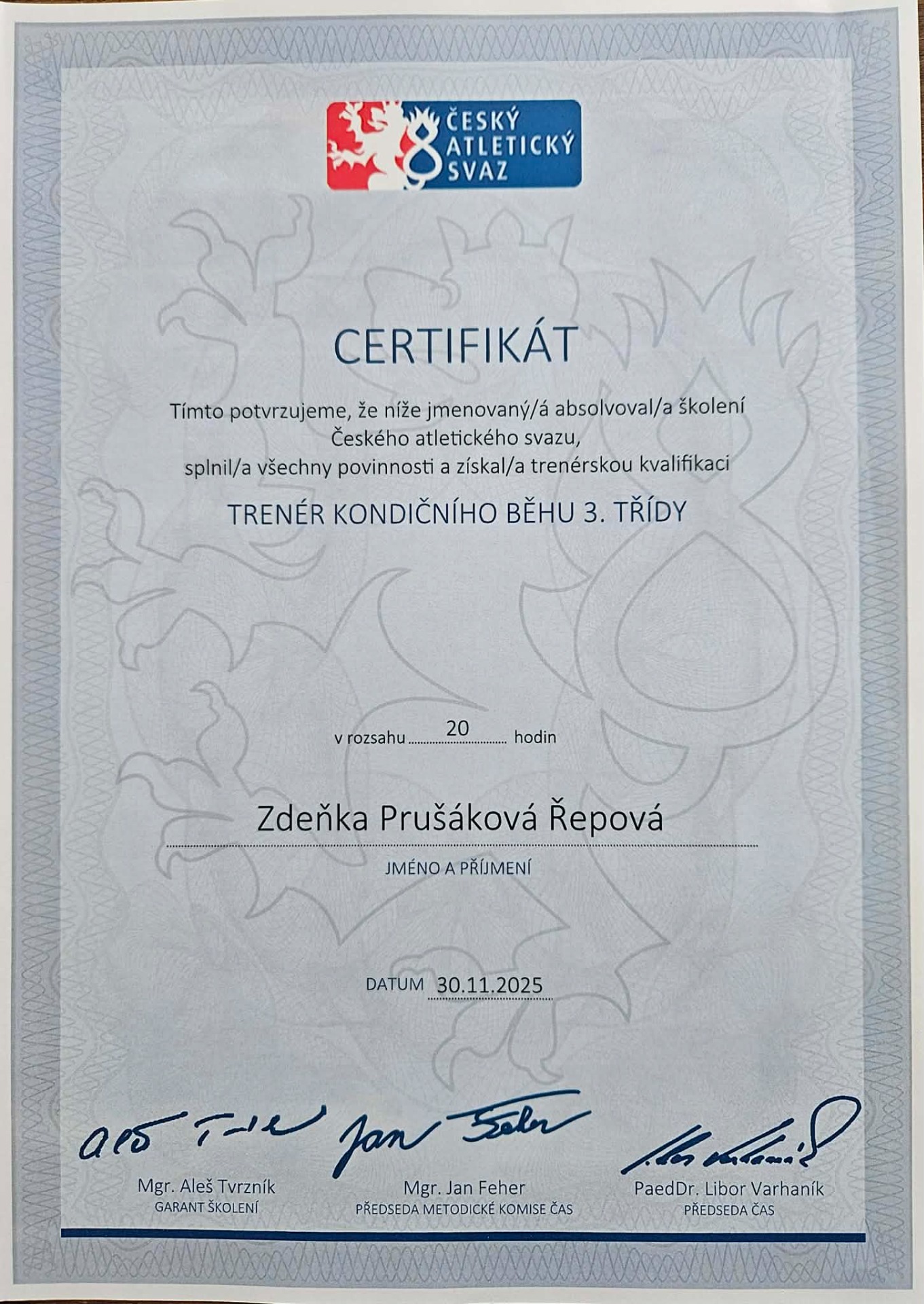 - Trenérka Kondičního Běhu v Českém atletickém svazu.